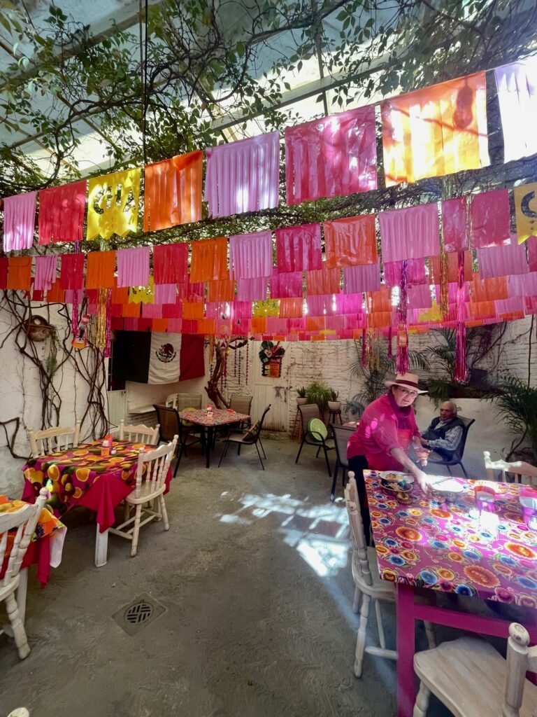 Posada Corazon is a magical world of a bed and breakfast where anyone can have breakfast. It’s best to make a reservation, and you have to get buzzed in, but what a fantasy this place is. It’s 250 pesos for everything during the week or 300 pesos on the weekend. The weekend includes a buffet of different cheeses, yogurt, and bread. We went on a Sunday, and there was a harpist there.