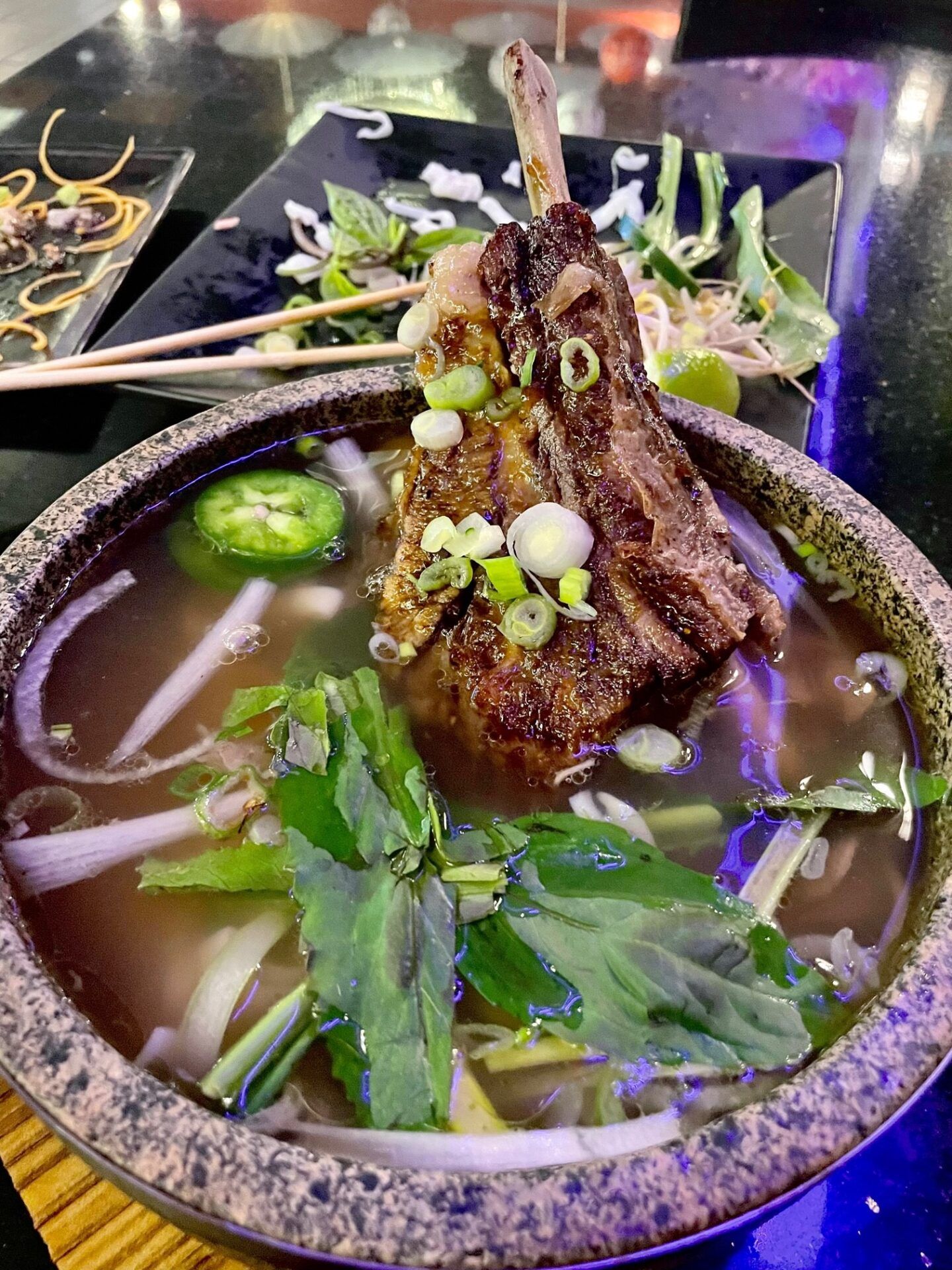 Dzo Pho has incredible pho with a clean broth that comes in a hot stone bowl (brilliant!), so it stays hot the entire time you are eating it. I love that you can get a beef short rib as one of the toppings. They also have sushi, including a lobster roll, and hibachi which I have yet to try. The atmosphere is great with dim lighting, and the service is great.